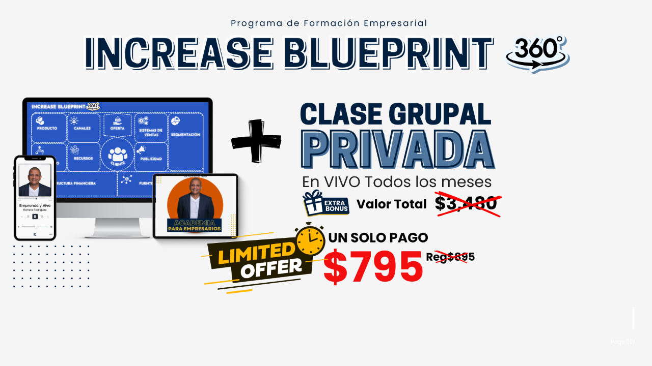 🎯 Increase Blueprint 360 es un programa de formación empresarial integral con acompañamiento grupal en vivo, diseñado para ayudarte a: